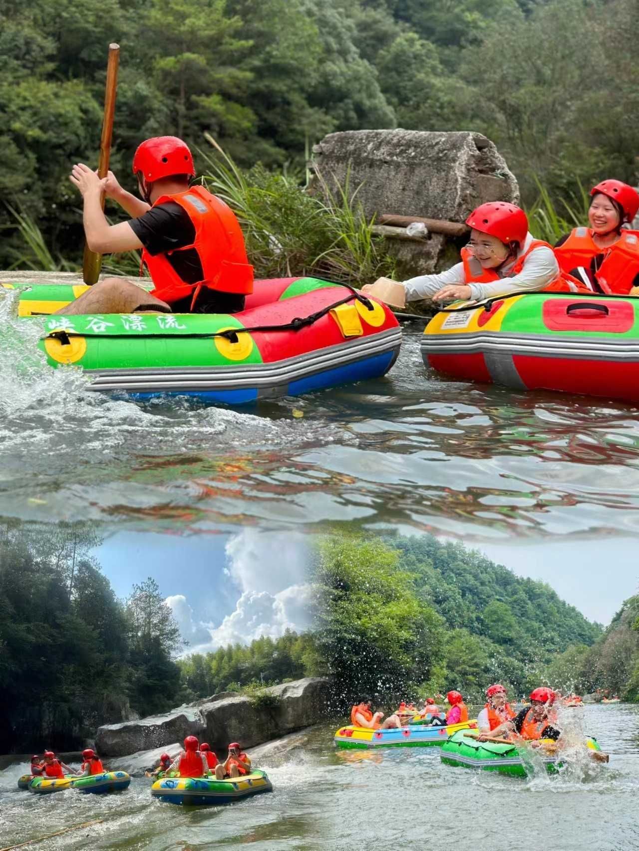 午餐過后,大家來到了石牛寨蟒洞峽谷漂流。嘩嘩的水聲,振蕩河谷,氣勢雄壯,一路漂流而下,激流險灘迭起。兩邊的崖壁上,秀木扶疏,青苔密布,各色野花灑落其間,織成一幅錦繡圖案。大家舉著水槍,拿著水瓢,與碧水嬉戲,在山谷間放歌,沿途的歡笑聲、尖叫聲此起彼伏。在漂流過程中,大家互相幫助,共同克服了一個個險峻的彎道,不僅體驗了漂流的樂趣,而且進一步增進了友誼。